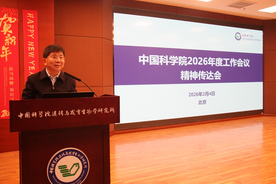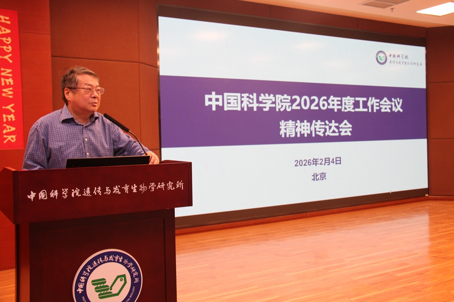 2026年2月4日,中国科学院遗传与发育生物学研究所组织召开中国科学院2026年度工作会议精神传达会,研究所全体职工参加会议。会议由党委书记兼副所长邢雪荣主持。