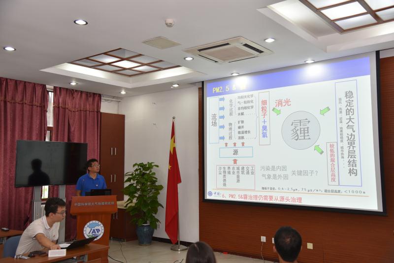 随后,大气物理研究所大气分中心副主任吉东升同志为大家带来了主题微团课,《北京大气重污染成因与改善情况》,吉主任风趣幽默却又不失严谨的演讲,进一步激发广大青年科技工作者的爱国之情,强化爱国之志。