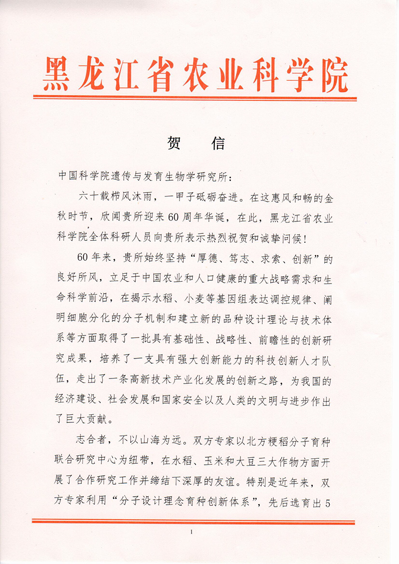 > 贺信 > 黑龙江省农业科学院