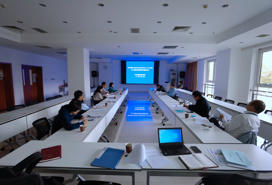 2021年10月26日下午,中国科学院遗传与发育生物学研究所党委理论学习中心组召开会议,深入学习贯彻落实习近平总书记在中央人才工作会议上的重要讲话精神,会议由党委书记邢雪荣主持。
