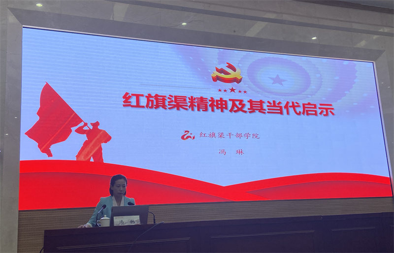 5月20日上午红旗渠干部学院冯琳老师以“红旗渠精神及其当代启示”为主题开展专题讲座,结合丰富的历史文献资料和习近平总书记重要讲话指示精神,从红旗渠修建的历史背景切入,深入阐释了红旗渠修建的当代启示,大力传承弘扬红旗渠精神,要坚持党的领导、坚持实事求是、坚定群众路线、坚守信仰的力量,不忘初心、牢记使命,为实现“两个一百年”的奋斗目标而不懈努力。纪录片《巍峨山碑:杨贵篇》中,以时任林县县委书记杨贵的专访为主线,详细记叙了红旗渠工程的决策、建设过程。从杨贵书记的身上,大家看到了坚守和信念,看到了责任和担当,看到了务实和苦干,看到了一心为民的那份执着与坚持。激励着每一个共产党员要为了人民、依靠人民,敢想敢干、实事求是,展现一名共产党员人的优良作风。