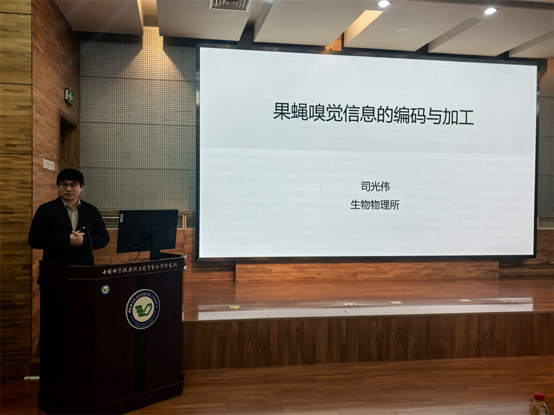司光伟研究员专注于揭示嗅觉信息编码的神经机制,在报告中介绍了解析果蝇嗅觉受体神经元对气味分子响应特性的工作,该工作阐述了气味分子与嗅觉受体之间的敏感性遵循幂律分布规律。这些工作为深入揭示嗅觉神经通路的组织原则和动态调控机制开辟了新视角。