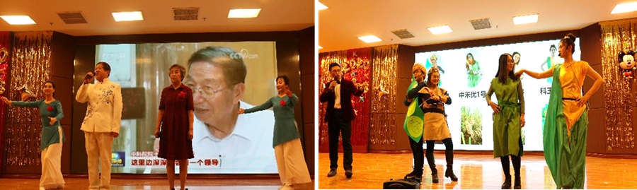 精彩的表演由欢快的开场舞蹈《火柴舞》拉开帷幕。本次汇演节目形式丰富多彩,既有《作物认亲大会》《一切都是最好的安排》《孔一姐》等欢快逗趣,寓教于乐的小品,也有《一生只为麦浪滚滚的“当代后稷”——李振声》和《为你写诗》这样颇有深意、感人至深的诗歌朗诵,还有《月圆花好》《柠檬精之歌》等其它歌舞类节目。演出过程精彩绝伦,各课题组都拿出十八般武艺,各显神通,创造出了那些科研人员才懂的梗。微信墙抽奖活动,上墙金句频出,让台下观众目不暇接,整个会场早已变成了欢乐的海洋。