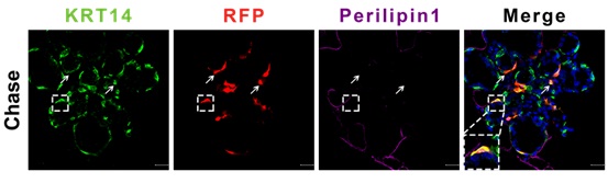 人和啮齿动物体内目前已知的脂肪细胞至少有三种:第一种是经典的白色脂肪细胞,胞内有一枚巨大的脂滴,其主要功能为储能。第二种是经典的褐色脂肪细胞,胞内富含大量线粒体和许多小脂滴,通过燃烧脂肪产生热量以维持体温。尽管褐色脂肪细胞也被称为“脂肪”,但是这类细胞的来源与正常的白色脂肪细胞不同,而是具有一定的骨骼肌细胞来源。近十年来又研究发现了第三类脂肪细胞,称为米色脂肪细胞,这类脂肪细胞可以在一定条件下发生“褐色化”或者“白色化”,例如在冷刺激下,可以消耗细胞内的脂滴和葡萄糖来激活产热功能,而在外界刺激结束后逐渐关闭产热功能,并能像白色脂肪细胞一样储存脂滴。大约15年前有报道称,雌性动物的白色脂肪细胞可以在哺乳期间转变为具有分泌乳汁功能的乳腺管上皮细胞,这类细胞被称为“粉色化”的脂肪细胞。但是褐色脂肪细胞和米色脂肪细胞是否同样具有转变为乳腺细胞的能力并不清楚。
