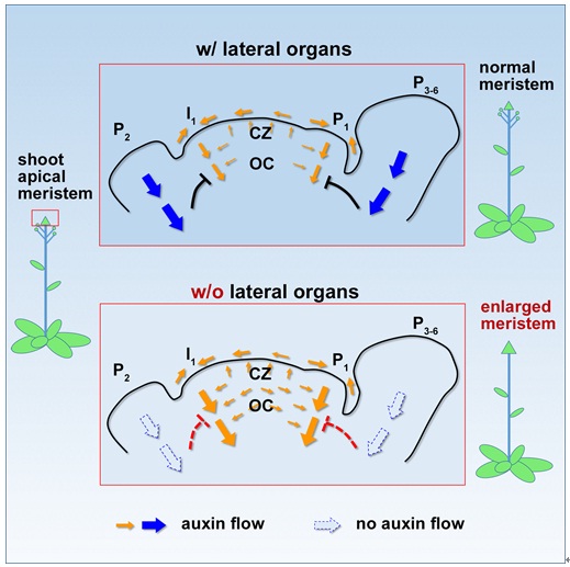 图:生长素运输介导侧生器官反馈调控茎尖干细胞稳态