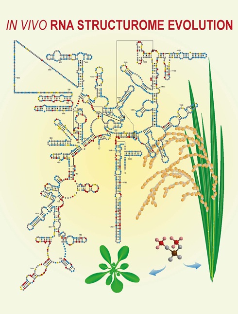中国科学院遗传与发育生物学研究所曹晓风研究组与英国John Innes Centre丁一倞研究组合作,利用硫酸二甲酯 (dimethyl sulfate,简称DMS) 对体内mRNA二级结构标记的方法,首次从结构组学角度深入探讨了水稻mRNA二级结构的特征和潜在的生物学功能。研究发现,在可变剪切、翻译的起始和终止过程,RNA具备非常保守的二级结构;6-甲基腺嘌呤修饰(m6A) 的位点及其附近的区段具有更趋于单链的RNA结构,这一趋势在富含m6A修饰的3’UTR区域更加明显;水稻体内RNA二级结构组与热力学预测的结果不一致,且RNA二级结构的热稳定程度与RNA的生物学功能有一定关系。此外,结合拟南芥mRNA二级结构组的数据,首次对水稻和拟南芥的同源基因的CDS序列和RNA二级结构序列进行比对,发现CDS序列一致性和RNA二级结构相似性并没有明显的相关性,因此推测RNA序列与RNA二级结构的保守性和多样性为不同的RNA赋予了不同的生物学功能,二者相辅相成,却又相互独立,使生物体在保持基本生长发育过程稳健性的基础上,具备适应不同生长环境的可塑性。这一研究为深入研究与重要农艺性状相关的基因提供了一个全新的认知维度。