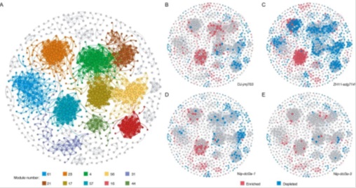 图:水稻根系微生物组共现网络揭示核心菌群受组蛋白甲基化调控。水稻根系微生物共存网络(左)以及受组蛋白甲基化影响的细菌在网络中的分布情况(右) |