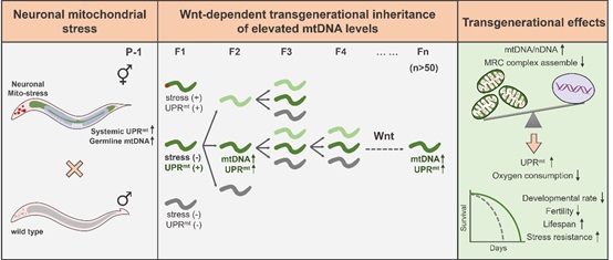 图:神经元线粒体应激通过调控mtDNA水平诱导UPRmt的跨代遗传