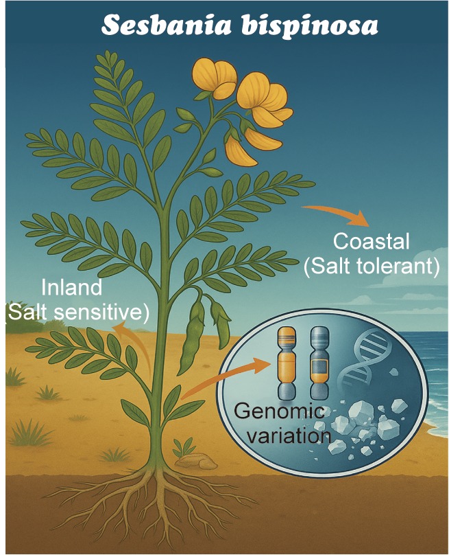 2025年5月29日,中国科学院遗传与发育生物学研究所曹晓风院士团队在Advanced Science学术期刊发表题为Genomic Variation Underpins Genetic Divergence and Differing Salt Resilience in Sesbania bispinosa的研究论文(https://doi.org/10.1002/advs.202502600)。该研究构建了耐盐型和敏盐型刺田菁高质量参考基因组,解析了二倍体刺田菁自然群体演化规律,发现了大尺度倒位变异导致了群体分化,从而演化获得耐盐性状,这项研究为豆科饲草和作物的抗逆分子育种提供了理论基础和基因资源。
