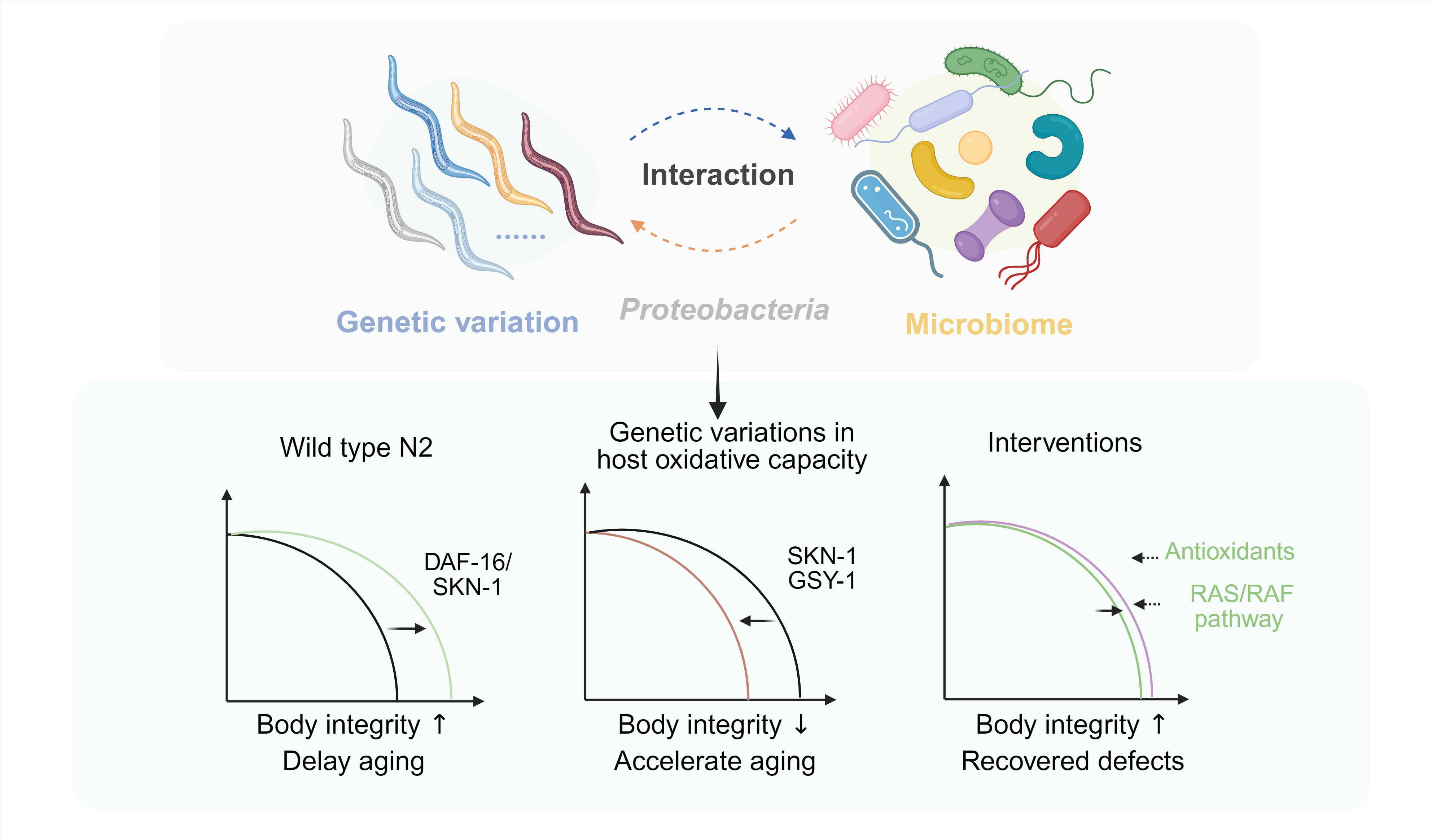 衰老是一个复杂的生物学过程,其受到遗传、环境和微生物等多重因素的共同调控。然而,目前的抗衰老研究大多基于遗传背景单一的个体展开,忽略了自然群体中广泛存在的遗传多样性。宿主的遗传变异如何决定微生物干预衰老的结局,是实现精准微生态干预中亟待解决的关键挑战。