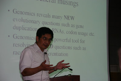 2007年7月23-24日,美国芝加哥大学生态和进化学系主任吴仲义教授对我所进行了为期两天的访问。李家洋副院长、薛勇彪所长与吴教授针对将来的合作及我国生物学领域的发展进行了交流。之后,吴教授与发育生物学研究中心、系统生物学研究中心的研究员,植物基因研究中心主任左建儒研究员和分子农业生物学研究中心凌宏清研究员进行了面对面的交流和讨论。应我所邀请,吴教授还作了题为"Genomics, miRNAs and speciation"的报告。做完报告后,吴教授与十几位研究生进行了座谈,座谈在热情友好的气氛中结束。