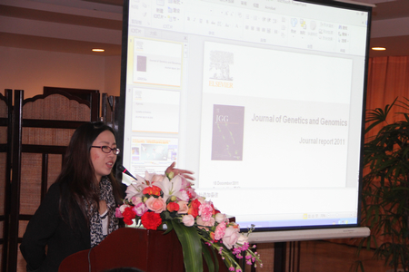 首先,薛勇彪主编代表中国科学院遗传与发育生物学研究所和中国遗传学会欢迎大家参加此次会议。随后,张颖编审做了2011年度JGG工作报告。就JGG基本情况、2011年开展的工作、审稿流程、编委职责以及2012年度工作计划与未来展望等几个方面进行了全面而详实的汇报。2011年对于JGG是快速发展的一年,JCR影响因子由0.813上升至1.494,海外来稿量和发表比例均大幅攀升,印刷版发表周期缩短至132天,网络发表周期为89天,封面与内文版式进行了改革,编辑力量进一步壮大。这些既是对JGG一年工作的肯定,也为下一步的发展打下了良好的基础。2012年,JGG将采用全新封面和全彩内文版式,组织3-4期高水平专刊,全面筹备编委会换届,增加栏目设置,加强期刊网站建设,进一步提升编辑人员的业务素质与服务质量。