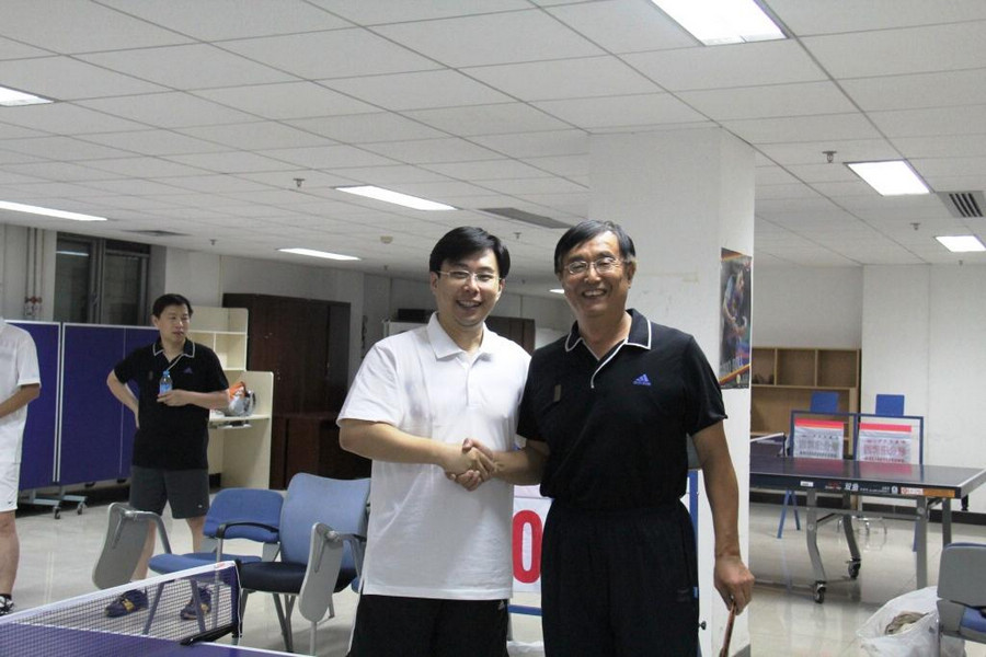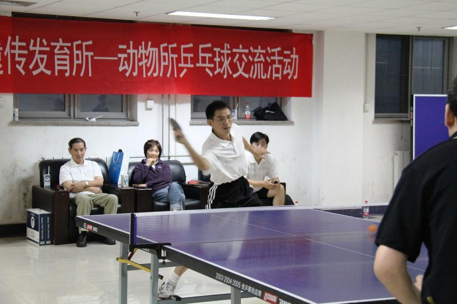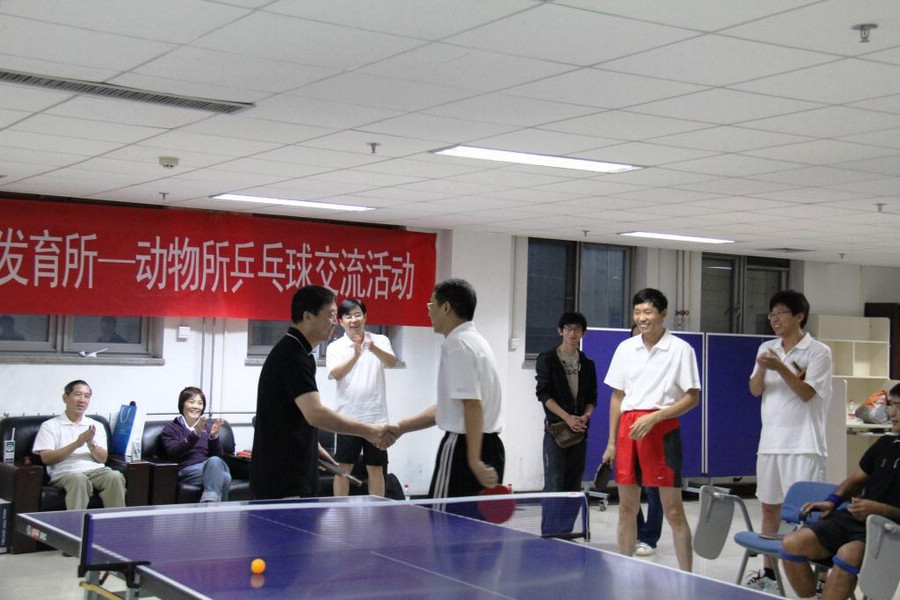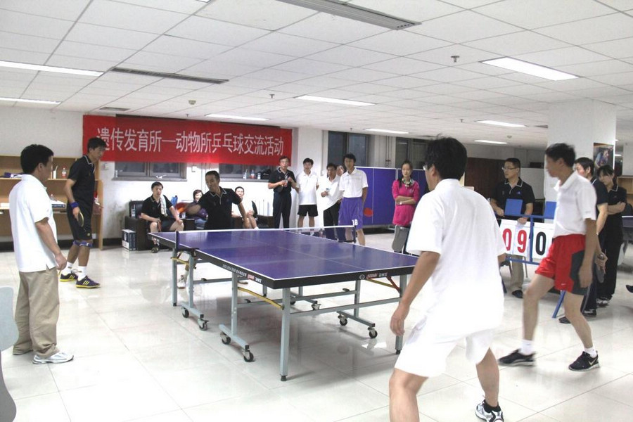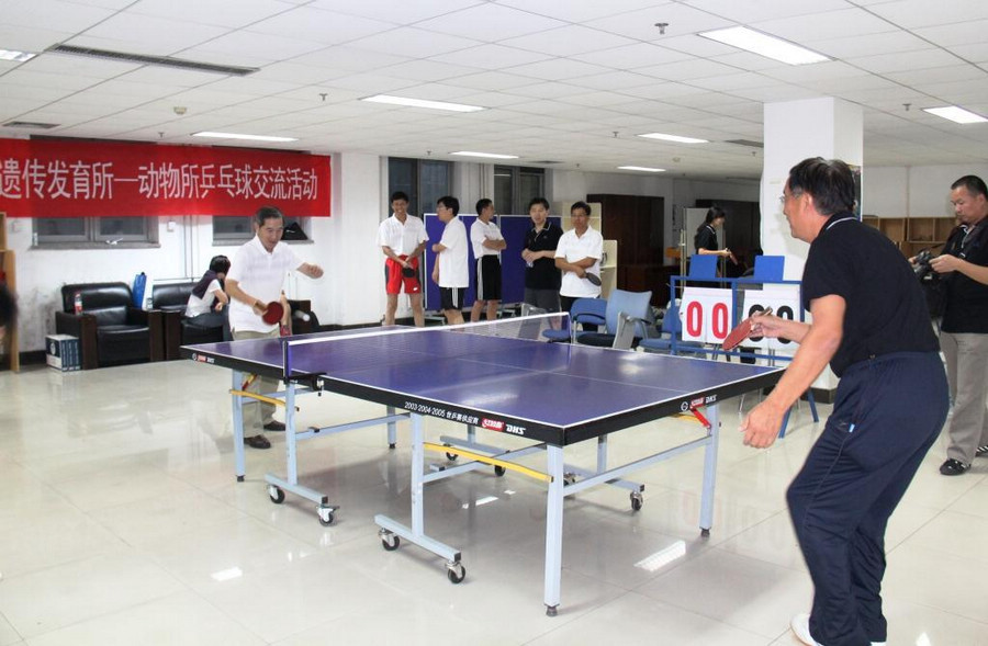 比赛正值中秋国庆假期前夕,气氛异常轻松活跃,两所的选手们很早就到了遗传发育所乒乓球活动室进行热身、叙旧、交流,难得的休闲时光让科技工作者们兴奋异常。在遗传发育所党委书记宋秋生简短热情的主持词过后,宋书记即与动物所副所长、党委副书记李志毅一起开球,预祝友谊赛圆满成功。随后,比赛在李志毅副所长和遗传发育所副所长、党委副书记胥伟华的单打大战中拉开了帷幕。双方各有13组乒乓球爱好者参加了单打和双打的团体对抗赛。比赛现场气氛紧张而热烈,比赛过程则异常激烈,选手们捉对撕杀,精彩场面层出不穷:去年的老对手又碰头了,看你今年如何再赢我;选手们你攻我防、你削我拉、你推我挡、你扣我接……最后,比赛在充满欢乐的和谐氛围中圆满落幕,大家一起相约明年再战!