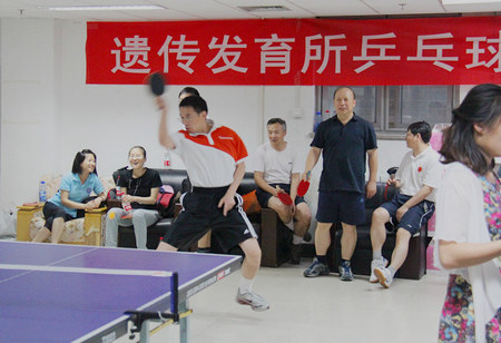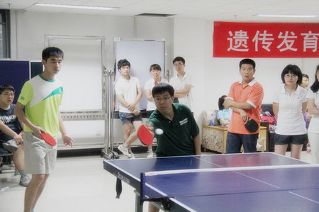 2013年5月30日下午,遗传发育所在活动中心举行了乒乓球团体赛。全所9支参赛队近70人参加了此次活动,胥伟华副书记和很多研究员都参加了活动(宋秋生书记在外开会并祝活动圆满成功),充分体现了我所对乒乓球运动的爱好和普及。比赛13:30准时开始,本着“友谊第一 比赛第二”的原则,比赛在轻松、友好的气氛中进行。参赛选手精湛的球技令人折服,赛场活跃的气氛更让人印象深刻。