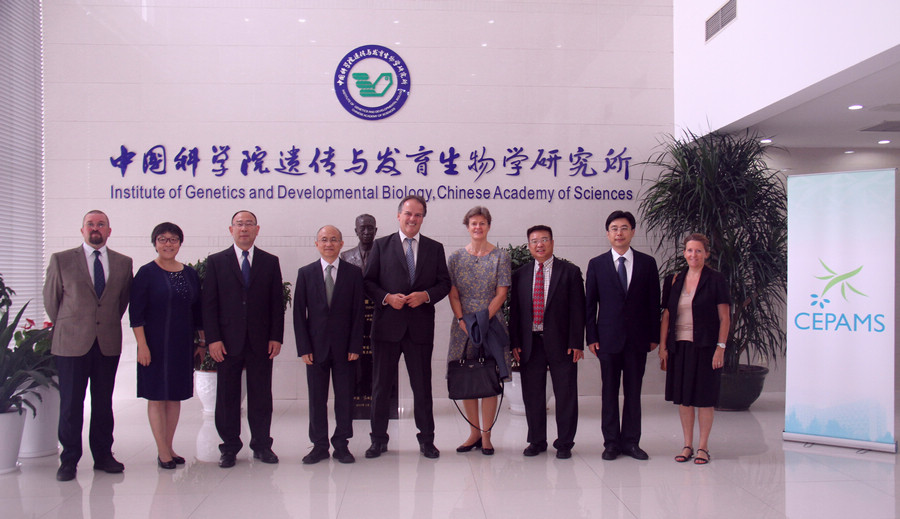 中国科学院-英国约翰英纳斯中心植物和微生物科学联合研究中心(简称CAS-JIC联合研究中心,英文简称为“CEPAMS”)是中国科学院遗传与发育生物学研究所、上海生命科学研究院植物生理生态研究所与英国约翰英纳斯中心于2014年7月联合组建成立的,它是中国科学院第一个作物改良和天然产物研究领域的国际联合研究中心。
