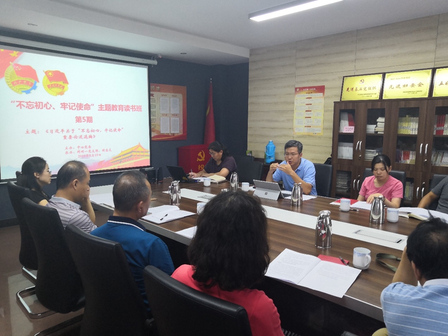 为深入开展“不忘初心,牢记使命”主题教育,深入学习习近平新时代中国特色社会主义思想和党的十九大精神,根据农业资源研究中心《“不忘初心、牢记使命”主题教育工作计划》和读书班系列活动部署,2019年8月19日下午,中国科学院遗传与发育生物学研究所农业资源研究中心党委主办、科研一支部和团总支联合承办了第五期“不忘初心、牢记使命”主题教育读书班活动。本次活动以《习近平关于“不忘初心,牢记使命”重要论述选编》(以下简称《选编》)为主要内容,由科研一支部书记董宝娣同志主持,中心副处级以上领导干部、支部书记、青年职工、学生党员、积极分子等近50人参加。