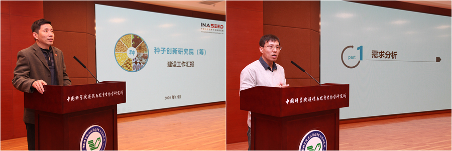 遗传发育所所长杨维才做了“研究所面向2035的十四五创新发展规划”的主题报告,种子创新研究院常务副院长陈凡做了“种子创新研究院十四五规划”报告,田志喜、刘小京、戴建武、傅向东、高彩霞、沈彦俊、黄勋和王秀杰研究员分别就研究所建议的三个重大突破:精准设计育种体系、环渤海循环农业科技示范工程、器官发育与再生医学,五个重点培育方向:基因组与复杂性状调控规律、设计育种与技术、农业生态可持续发展、细胞发育分化分子机理、主动健康与未来生命创造做了专题报告。遗传发育所党委书记胥伟华做了“体制机制改革举措与党建”的管理主题报告,顾佩芝、王静、税光厚和邓向东就财务运行、人才工作、平台运行和科研项目分别做了专题报告。