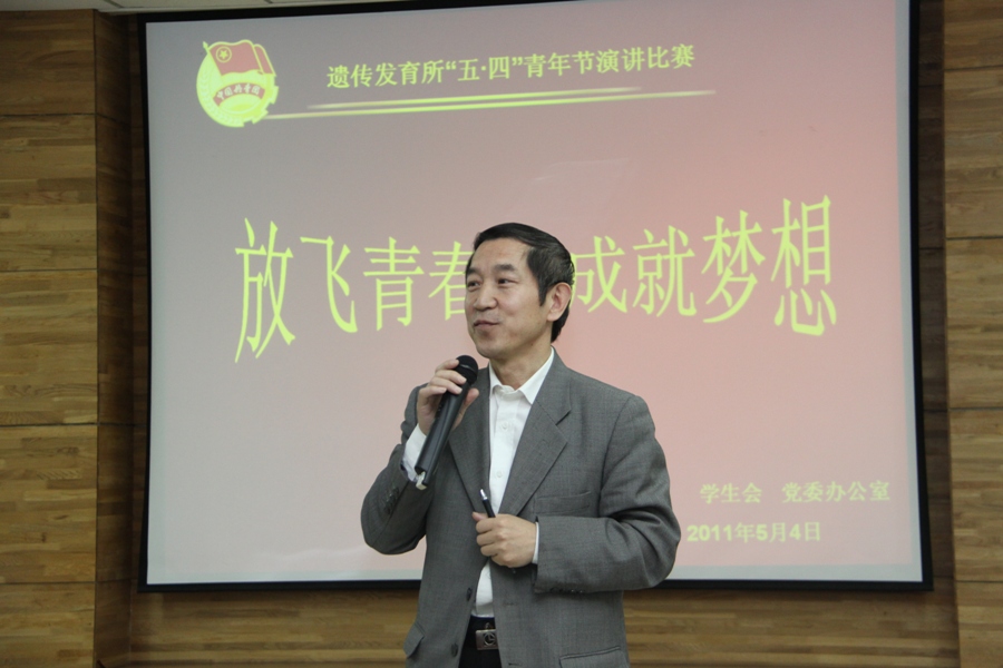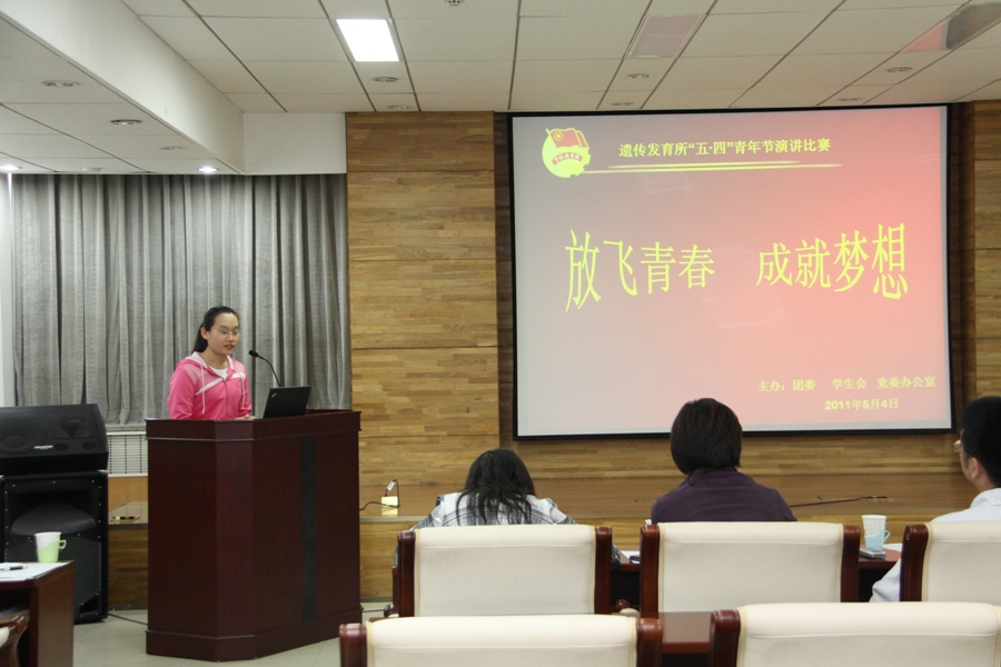 为增进思想交流,丰富课余生活,展示年青人的青春与活力,增强年青人的自信心和自豪感,遗传与发育生物学研究所于2011年5月4日上午举行主题为“放飞青春成就梦想”的五四青年节演讲比赛。担任此次比赛评委的所领导为宋秋生书记,同时担任评委工作的还有院团委委员王秀杰研究员、研究资源中心仇光星主任、黄勋研究员、党委办公室刘春光主任、人力资源处王宁处长以及原副所长袁开文老师。