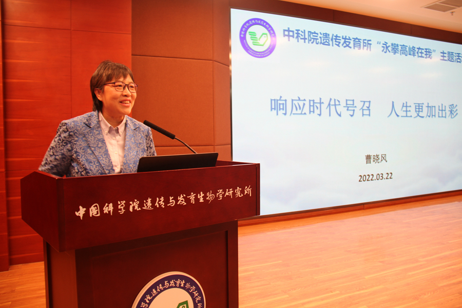 2022322日,中国科学院遗传与发育生物学研究所党委和妇委会在研究所1号楼报告厅举办了“永攀高峰在我”主题系列活动,邀请政协第十三届全国委员会委员、CEPAMS共同主任曹晓风院士为全所科研人员做题为“响应时代号召,人生更加出彩”的主旨报告会。研究所党委书记兼副所长邢雪荣主持会议,党委副书记、纪委书记申倚敏、陈受宜研究员、高彩霞研究员、胡赞民研究员、刘翠敏研究员、王秀杰研究员、许操研究员、张劲松研究员和周奕华研究员等出席会议。报告会受到研究所广大职工学生的热烈欢迎并开设了视频分会场,在保证疫情防控的同时满足大家的参与需求。
