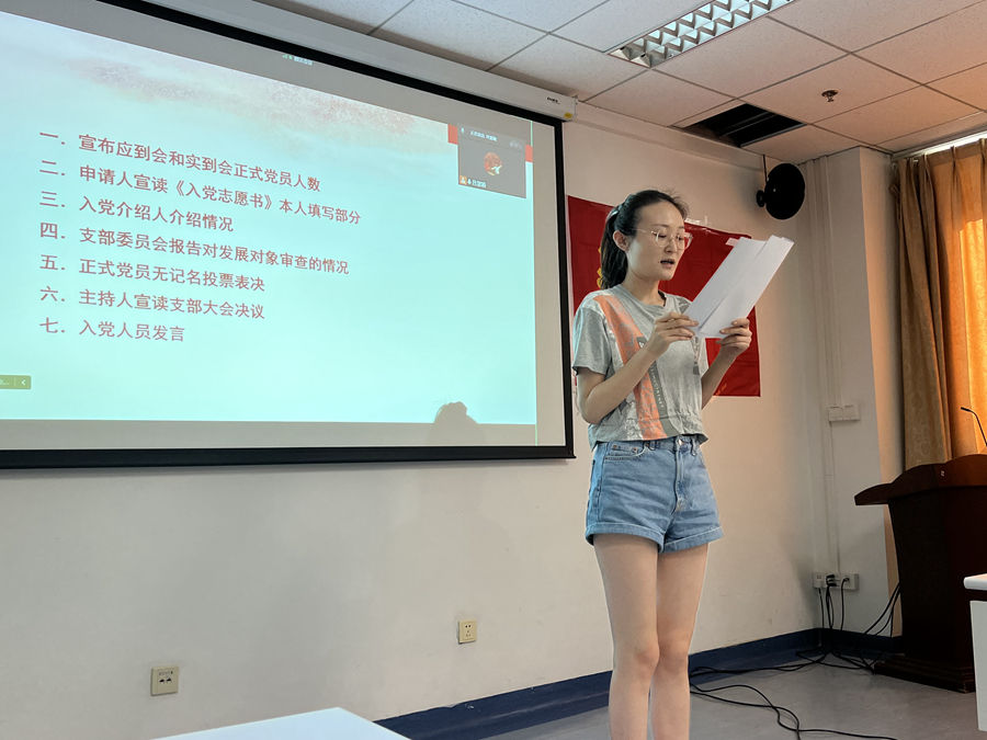 最后,会议选举杜桂杰为支部青年委员兼纪检委员。经全体党员无记名投票表决,同意接收崔韬同志为预备党员。