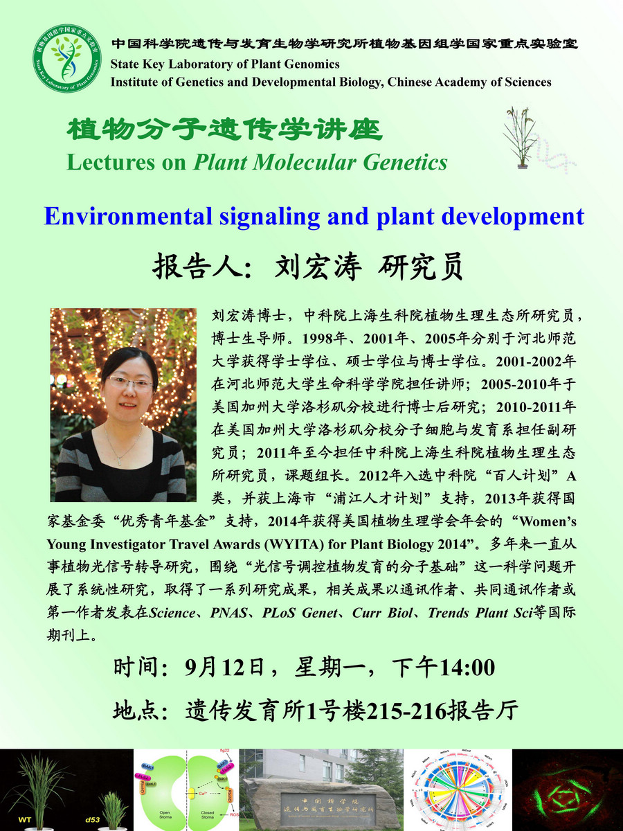 植物分子遗传学讲座:Environmental signaling and plant development(时间:2016年9月12日14:00)
