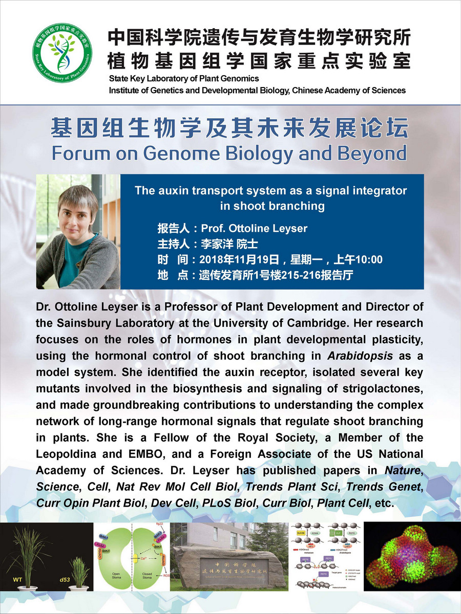 基因组生物学及其未来发展论坛:The auxin transport system as a signal integrator in shoot branching(时间:2018年11月19日10:00)