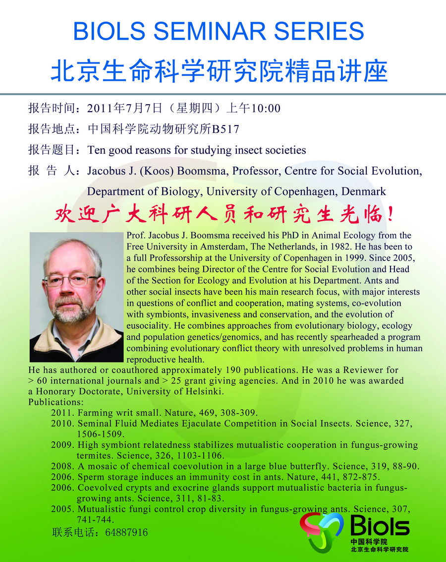 生科院精品讲座(时间:2011年7月7日上午10:00)