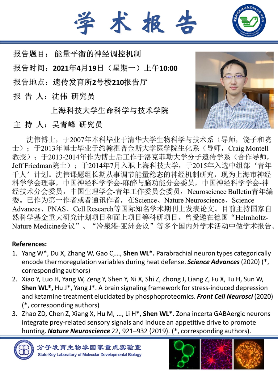 能量平衡的神经调控机制(报告时间:2021年4月19日10:00)
