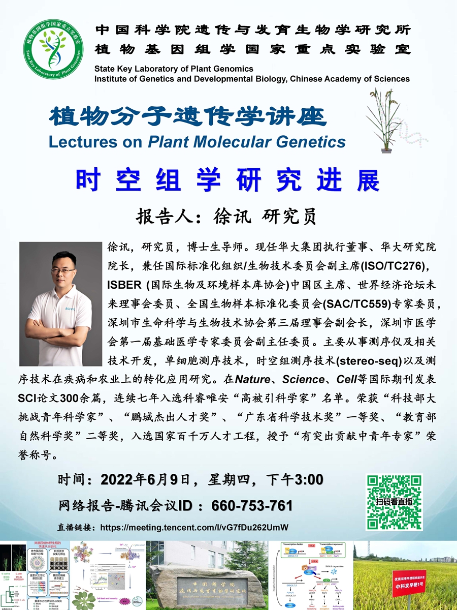 植物分子遗传学讲座(网络报告):时空组学研究进展(时间:2022年6月9日15:00)