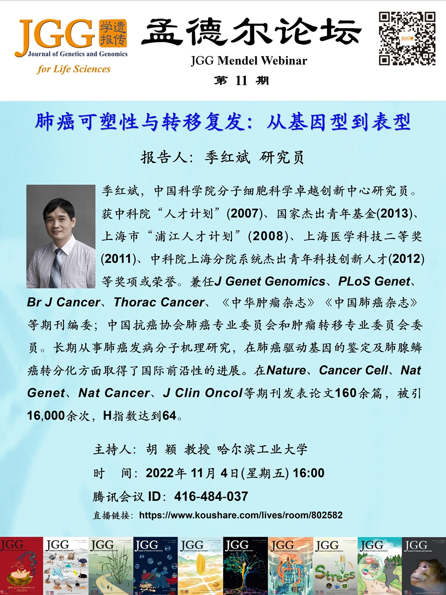 JGG孟德尔论坛:季红斌研究员解析肺癌可塑性与转移复发(报告时间:2022年11月4日16:00)