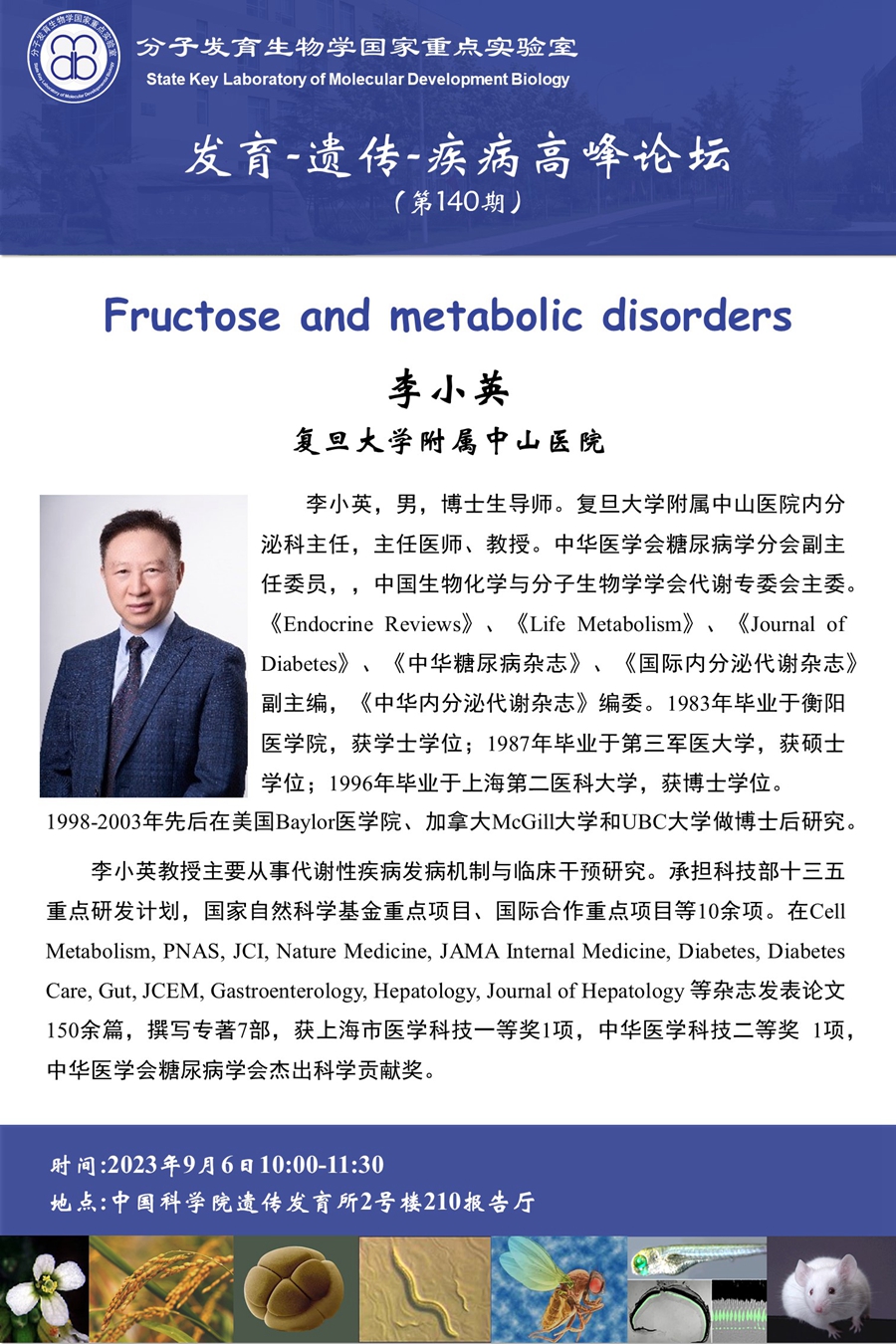 发育-遗传-疾病高峰论坛:Fructose and metabolic disorders(报告时间:2023年9月6日10:00)