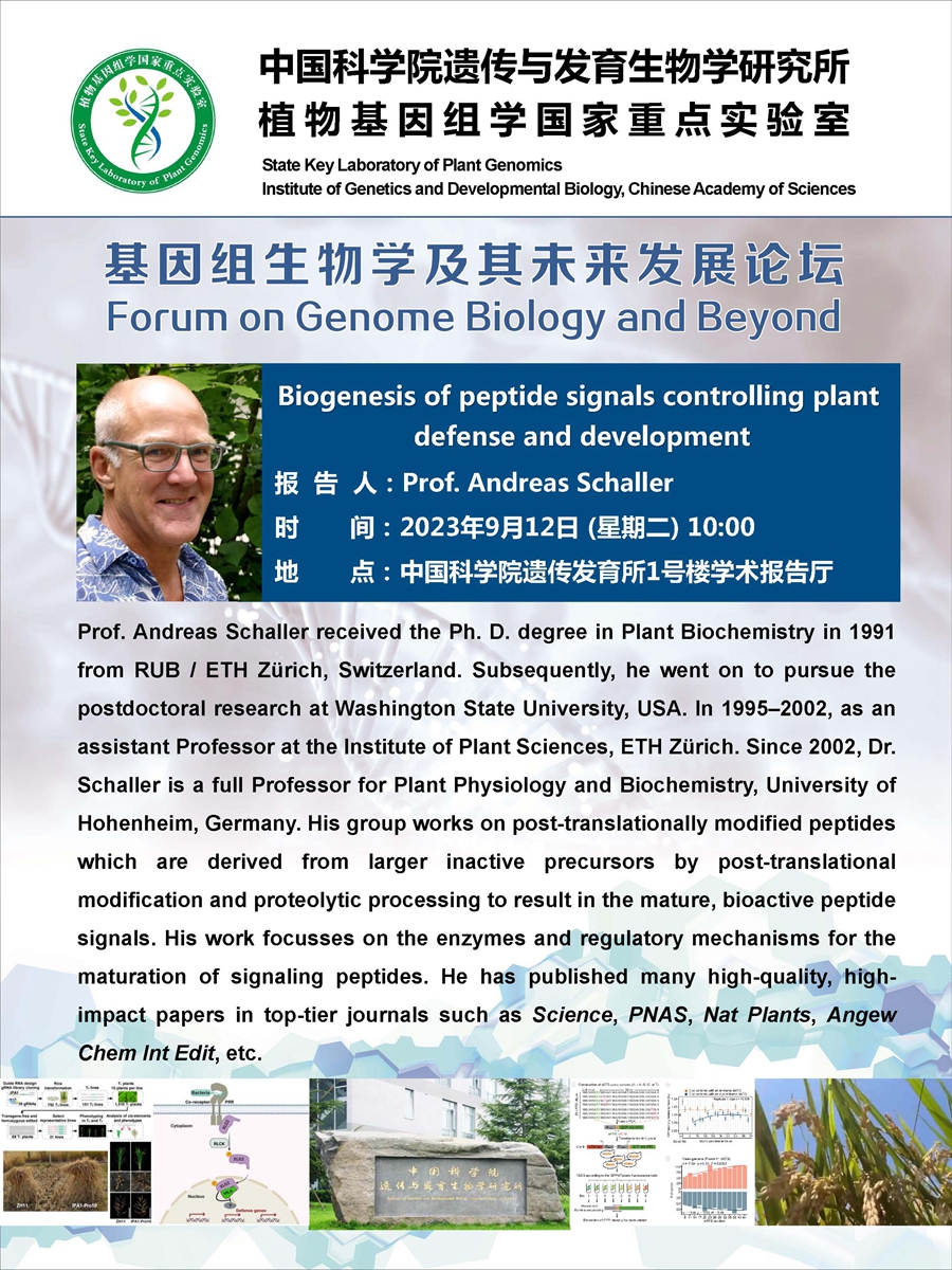 基因组生物学及其未来发展论坛:Biogenesis of peptide signals controlling plant defense and development (9月12日10:00)