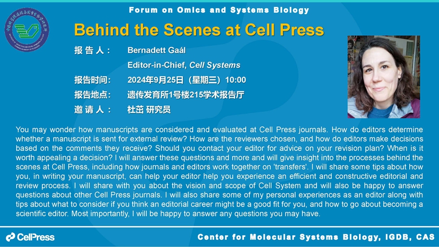 组学与系统生物学论坛:Behind the Scenes at Cell Press(2024年9月25日10:00)