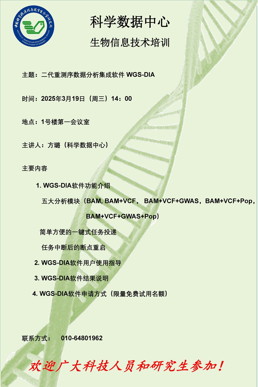 二代重测序数据分析集成软件 WGS-DIA培训(3月19日14:00)