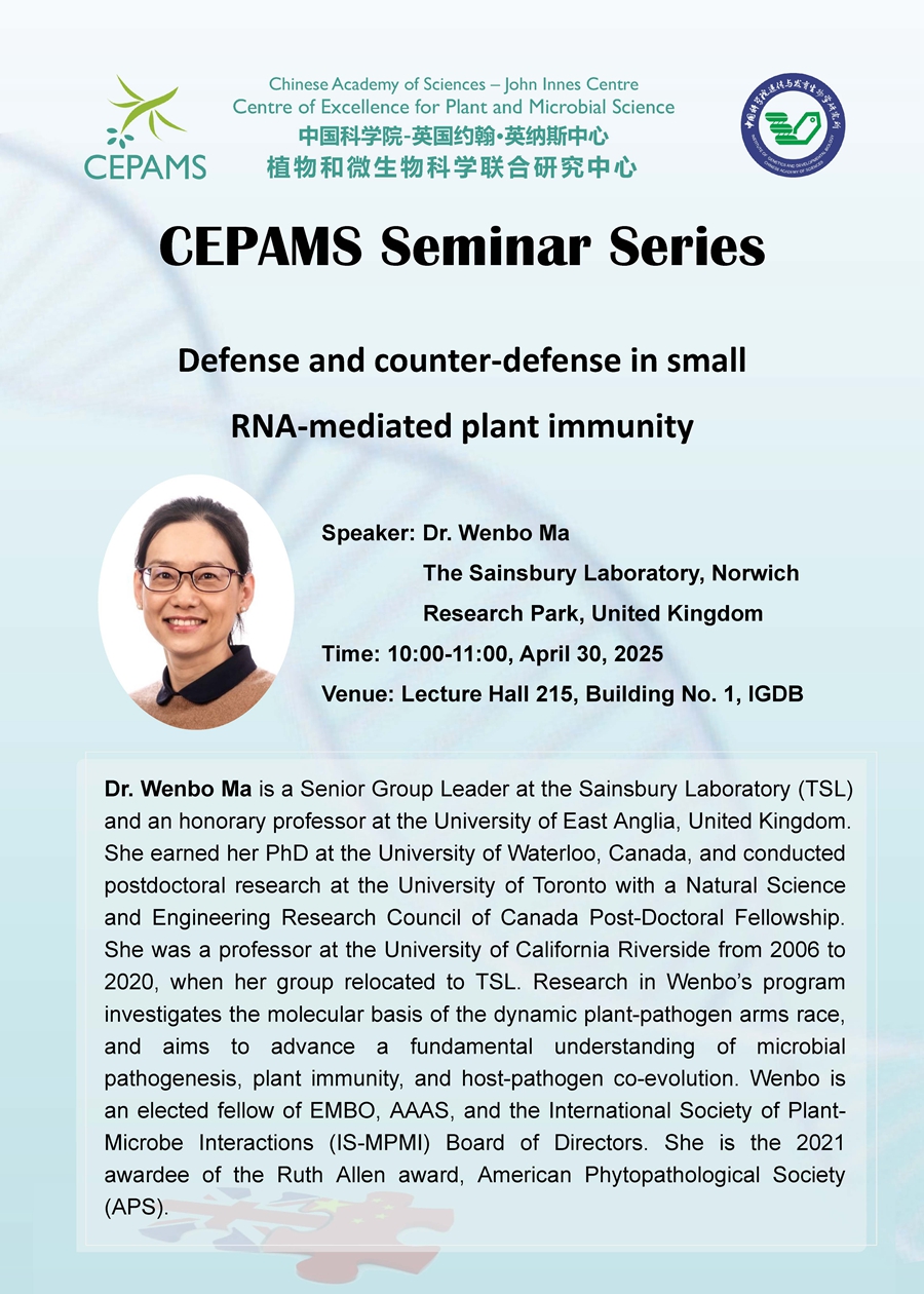 CEPAMS Seminar: Defense and counter-defense in small RNA-mediated plant immunity (4月30日 10:00)
