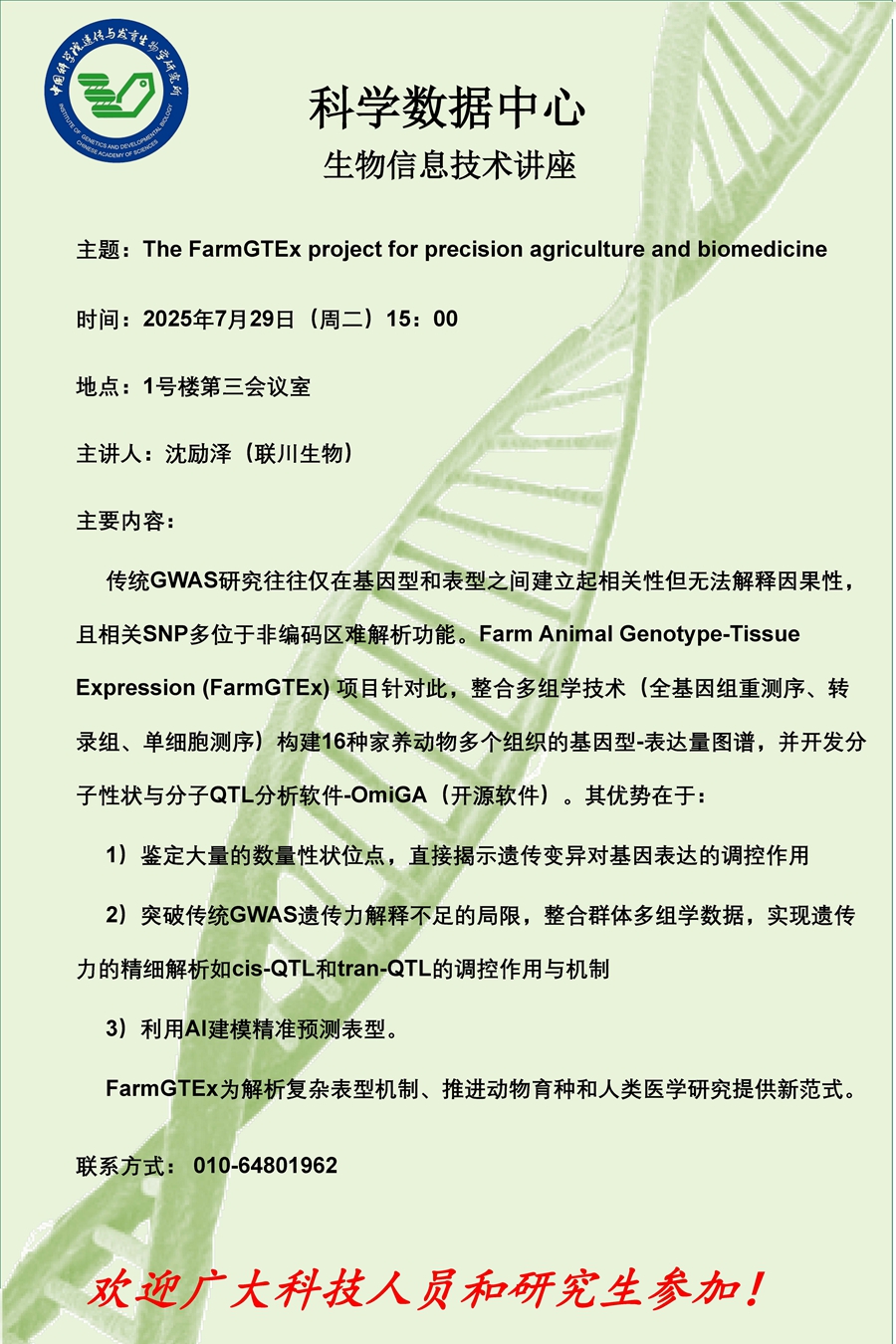 The FarmGTEx project for precision agriculture and biomedicine(7月29日15:00)