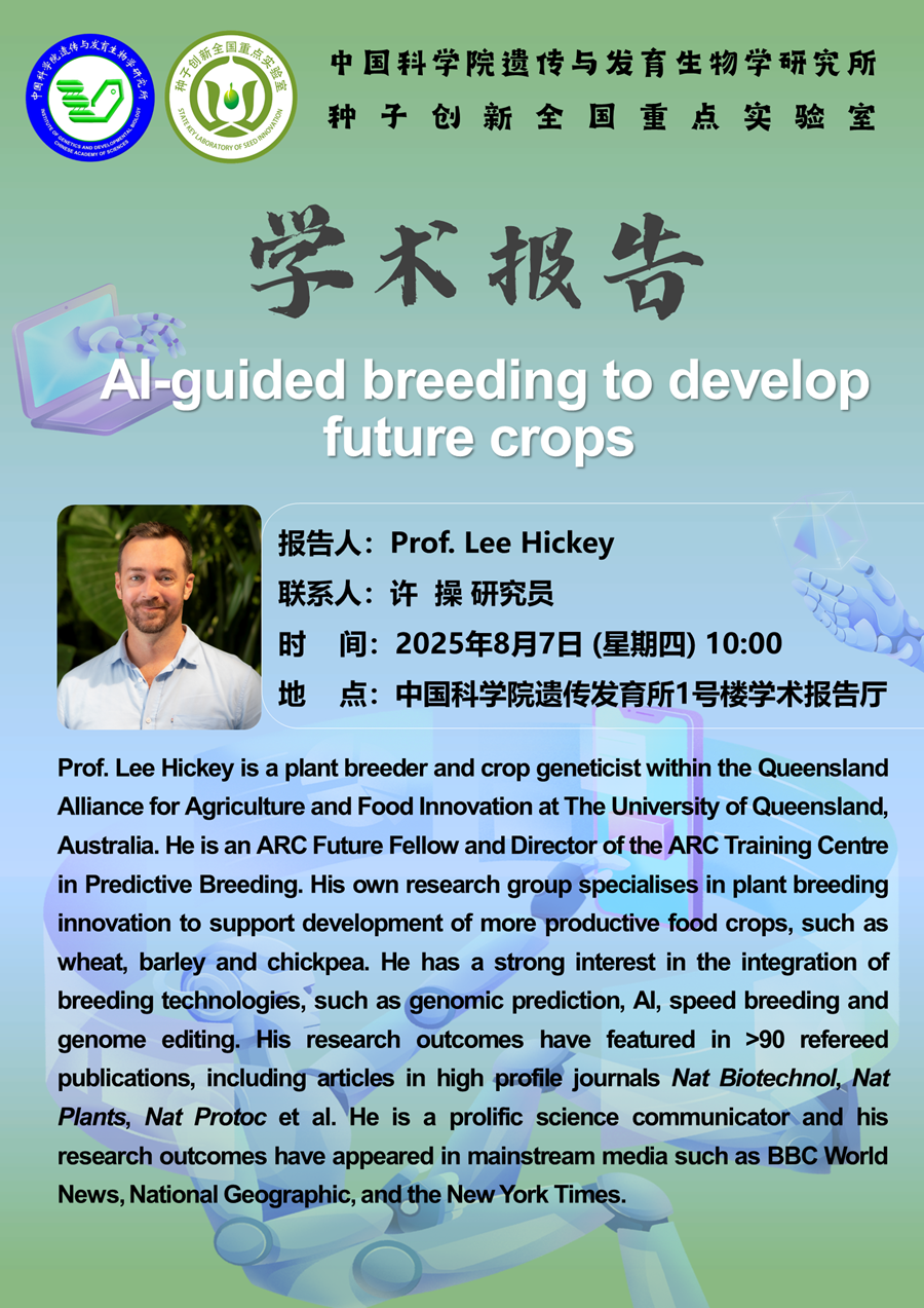 种子创新全国重点实验室学术报告:AI-guided breeding to develop future crops(8月7日10:00)