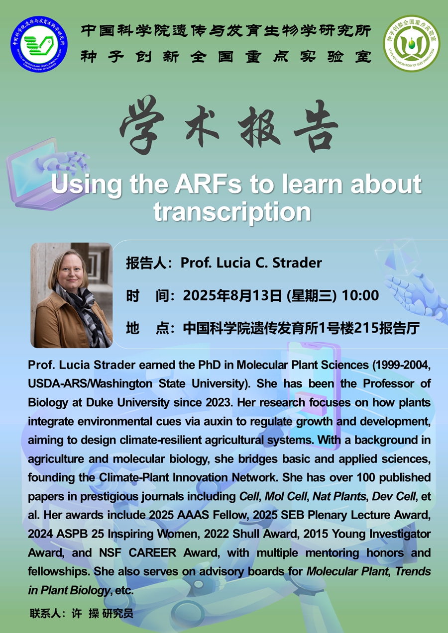 种子创新全国重点实验室学术报告:Using the ARFs to learn about transcription(8月13日10:00)