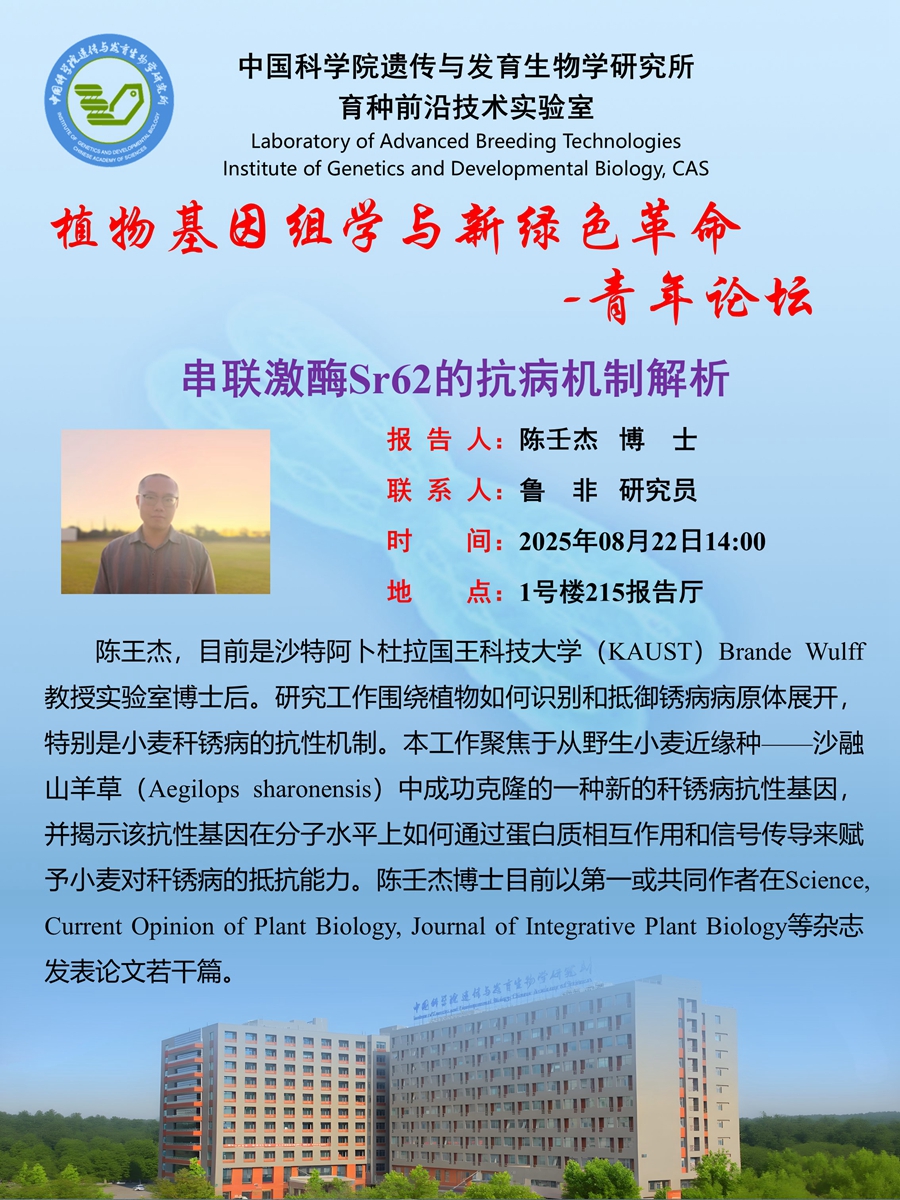 植物基因组学与新绿色革命青年论坛:串联激酶Sr62的抗病机制解析(8月22日14:00)