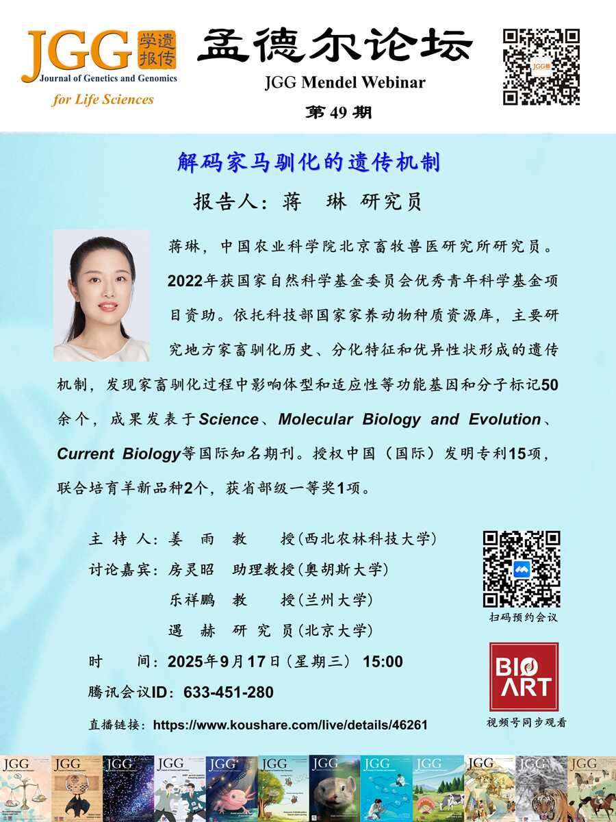 JGG孟德尔论坛|蒋琳研究员:解码家马驯化的遗传机制