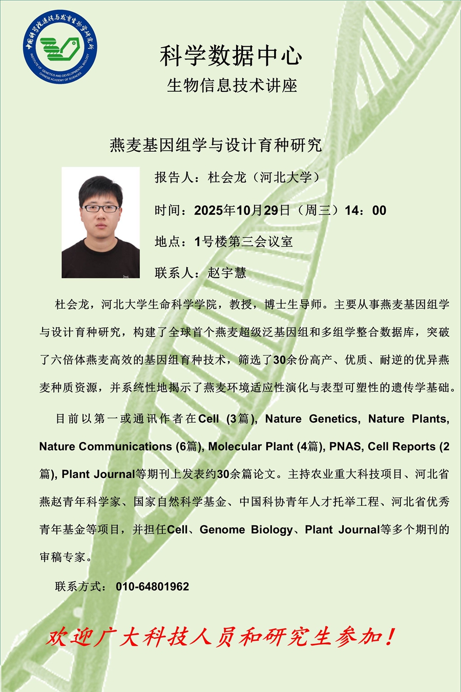燕麦基因组学与设计育种研究(2025年10月29日14:00)