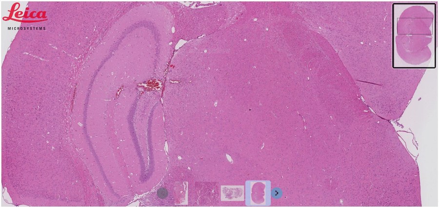 LeicaSCN400全景扫描系统可以获得完全数字化、高辩率的样本图像,可以根据需要选择任意大小的区域放大适合的倍数进行图像观察和分析。