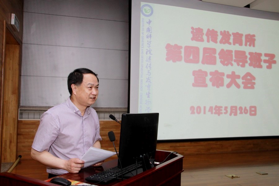 马扬首先宣布中科院关于遗传与发育生物学研究所新一届领导班子的任命:杨维才同志任遗传与发育生物学研究所所长,胥伟华、张永清、韩一波和胡春胜同志任副所长。同时,还宣布了韩一波同志任遗传与发育生物学研究所纪委书记。