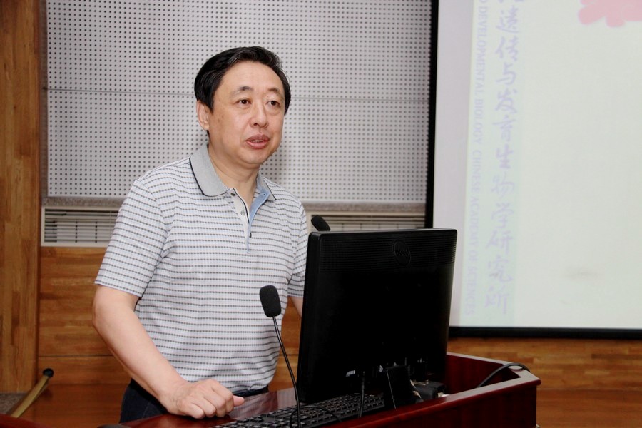 原所长薛勇彪代表上一届领导班子讲话,他对曾经支持自己工作的院领导、班子成员以及广大员工表示由衷的感谢,并祝福遗传发育所在新领导班子带领下有更好的发展。