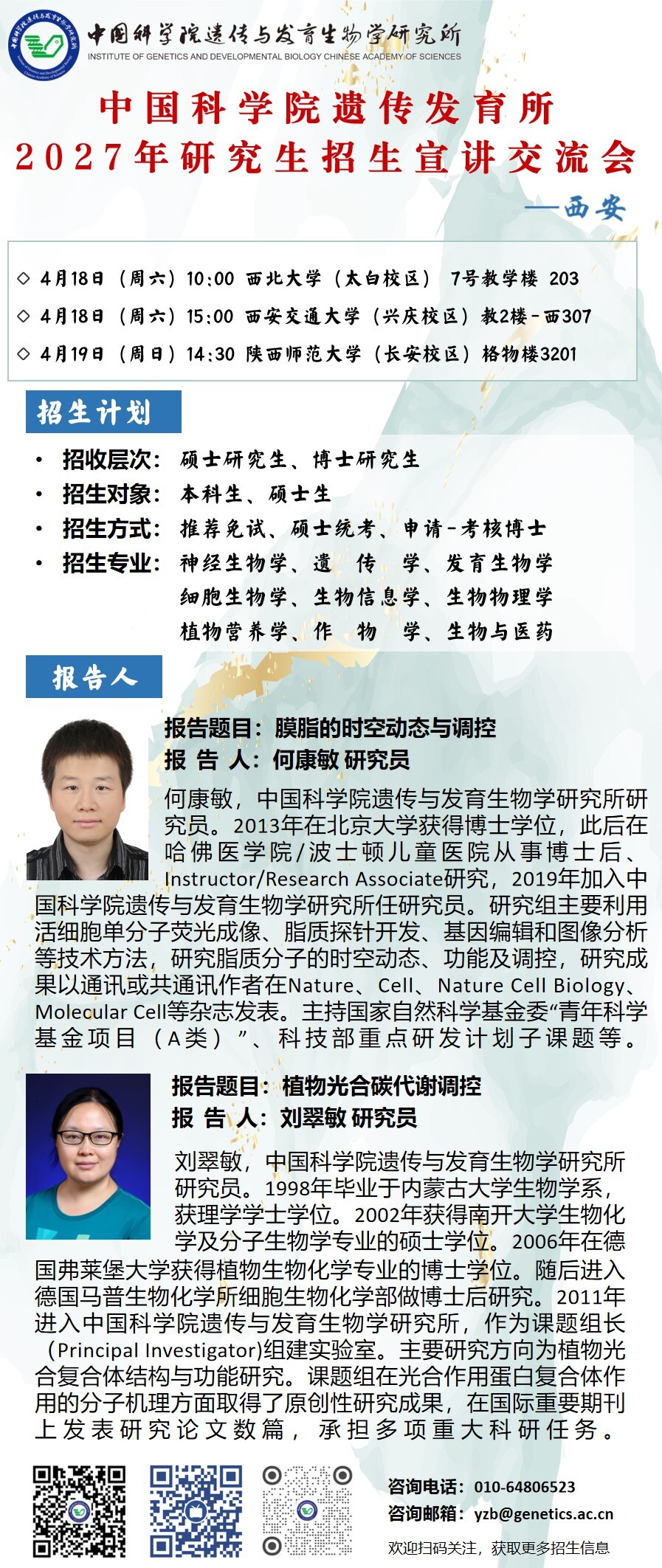 欢迎参加遗传发育所2027年招生宣讲交流会·西安