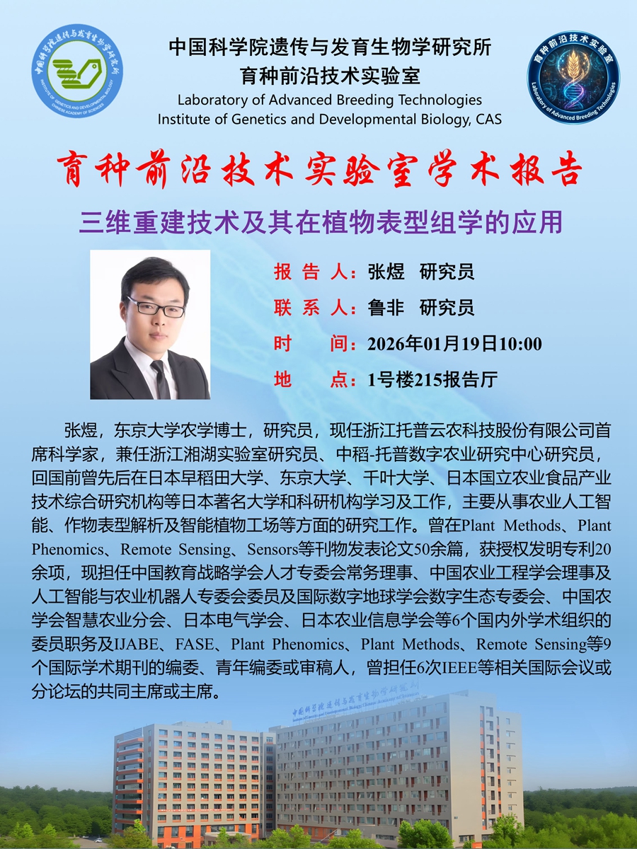 育种前沿技术实验室学术报告:三维重建技术及其在植物表型组学的应用(1月19日10:00)